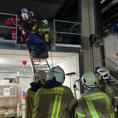 • Höhenrettung einer verletzten Person aus einem erhöhten Bereich