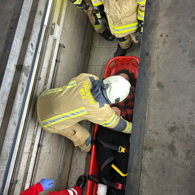 Besonders herausfordernd war die Bergung der Person mit Pfählungsverletzung, da hierbei ein besonders umsichtiges und schonendes Vorgehen gefragt ist, um weitere Verletzungen zu vermeiden.