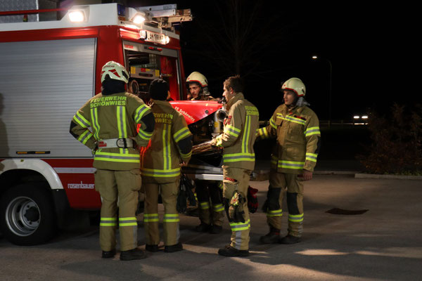 Ein Teil der Mannschaft musste daraufhin vom ersten Einsatz abgezogen werden, um die neue Lage zu bewältigen. Das bedeutete: weniger Personal – und weniger Gerät. Einige der benötigten Arbeitsutensilien befanden sich bereits im Einsatz beim ersten Szenario. Die verbliebene Mannschaft war daher gezwungen, kreativ und improvisationsstark zu handeln.