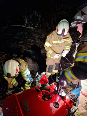 Nachdem das Fahrzeug gesichert war, konnte die eingeschlossene Person durch die Feuerwehr mit technischem Gerät befreit und anschließend versorgt werden. Parallel dazu durchkämmten Suchtrupps der Bergrettung und Feuerwehr das umliegende Gelände, um die vermissten Personen zu lokalisieren. Nach kurzer Zeit konnten alle vermissten Personen gefunden und sicher geborgen werden.